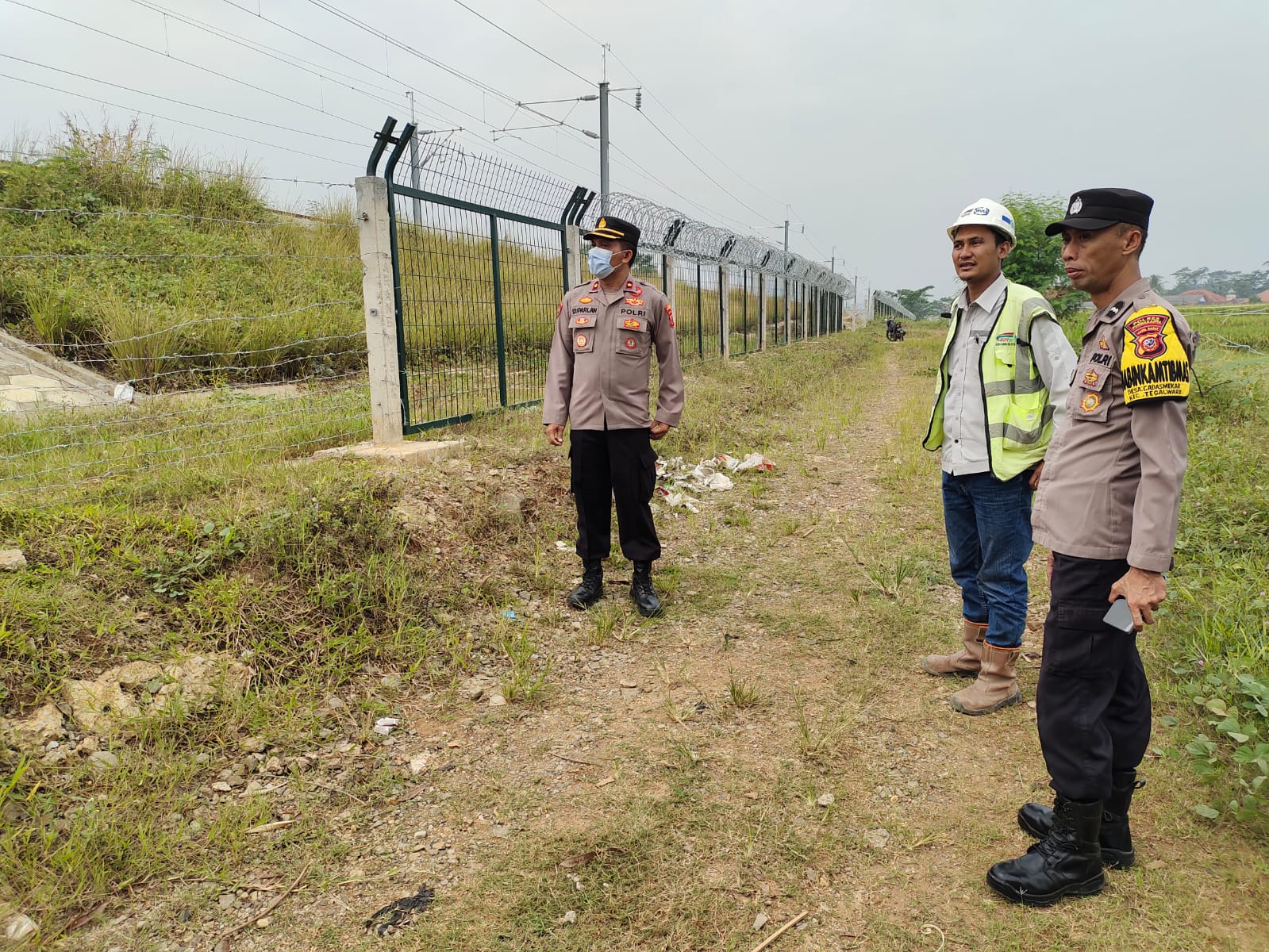 LUGASBERITA – Personel Polsek Plered, Polres Purwakarta lakukan pengamanan jalur Kereta Cepat di wilayah Kecamatan Plered, Kabupaten Purwakarta.