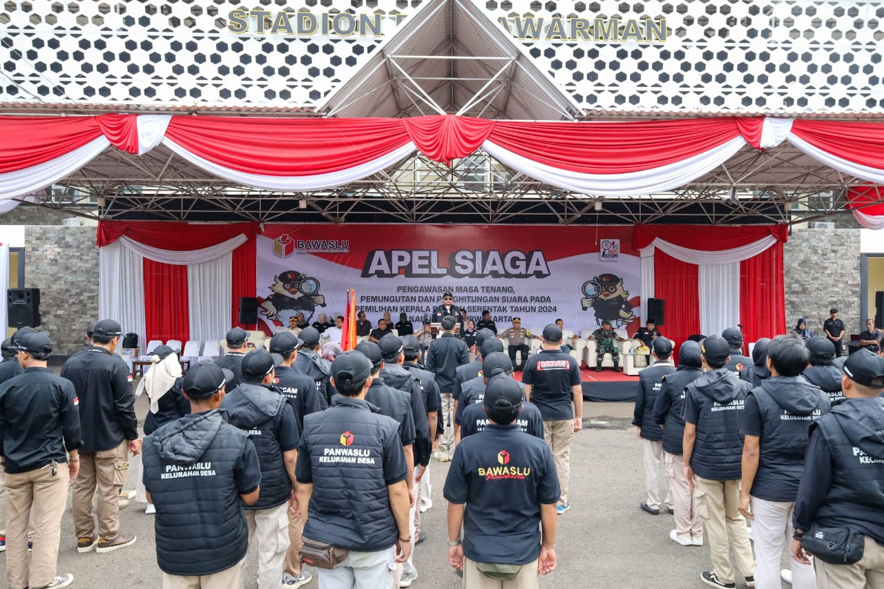 PURWAKARTA – Jajaran Badan Pengawas Pemilu (Bawaslu) Kabupaten Purwakarta gelar Apel Siaga Pengawasan, di halaman Stadion Purnawarman, Purwakarta, Sabtu 23 November 2024.
