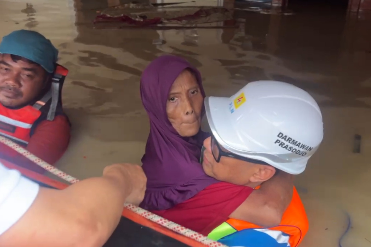Senada, Murni (54) menyebutkan, tim PLN juga membantu evakuasi para Lansia dan anak-anak ke tempat yang lebih aman. Sebelum evakuasi, Murni terjebak di dalam rumah tanpa persediaan makanan yang mencukupi.